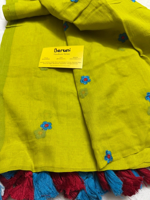 Mini Flower Embroidery mul cotton saree